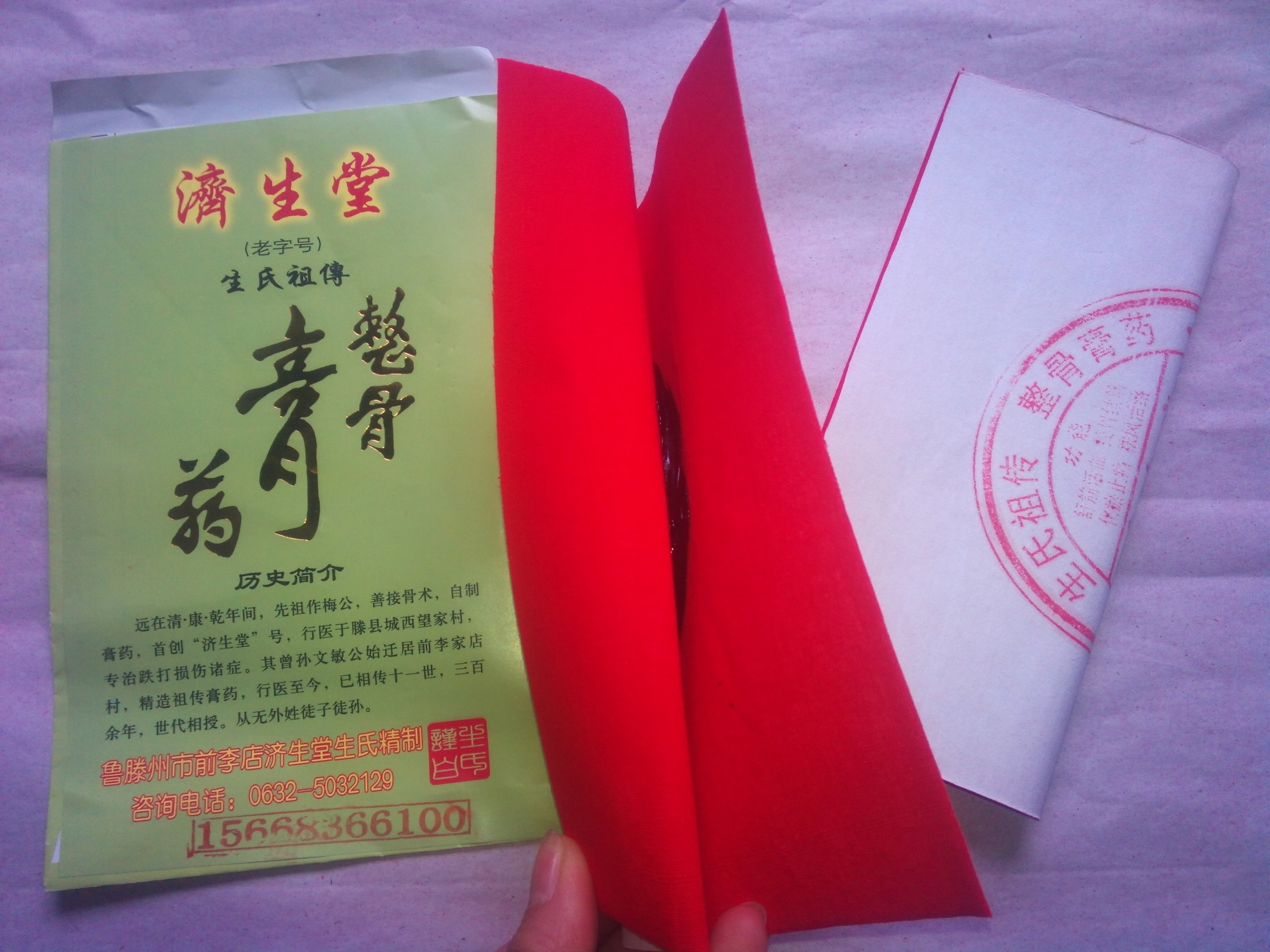 三百年来久盛不衰,景仰求医者络绎不断。 生氏整骨术以“手腕复位,夹板巩固,膏药外敷,中药内服等“,主治跌打毁伤,骨折脱臼,闪挫扭伤,筋骨苦楚悲伤等。其特性是:准确确诊、徒手整复、表里兼治、音讯别离。医治央求:早、巧、准。并在医疗中操控”攻、养、疗、节“四个要害,照顾护士关键是:公正操控体位,严格操控”起、行、坐、卧“的时间性。生氏整骨构成一整套公正有用的医治方法,已被医学界和广大病人所认可和担任。 黑膏药是故国医学四大传统剂型之一,至今已有1600多年汗青具有效果时间长可起部分及浑身医治的效果,效果切当,使用时可随症加药物(粉末)以适应临床医治必要在中医外治法中仍具十分紧张的职位中央。