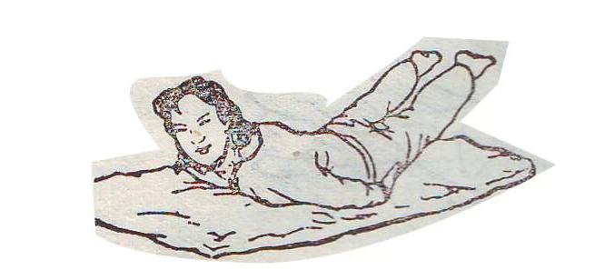 病人俯卧在胸前三个枕头与大腿部三个枕头上,腰部不加任何压力自然下沉十至十五分钟,这种姿势可以使腰椎后缘间隙变小,把突出的骨髓核推入椎间盘间隙内。